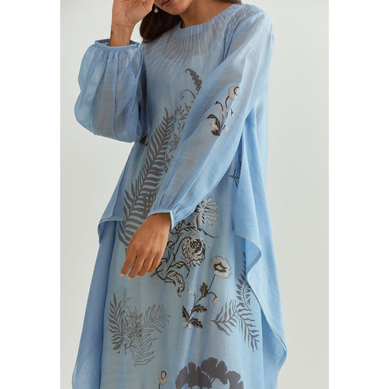 PRAMA By Pratima Pandey Printed Chanderi Blue Kurta with Inner (Set of 2)