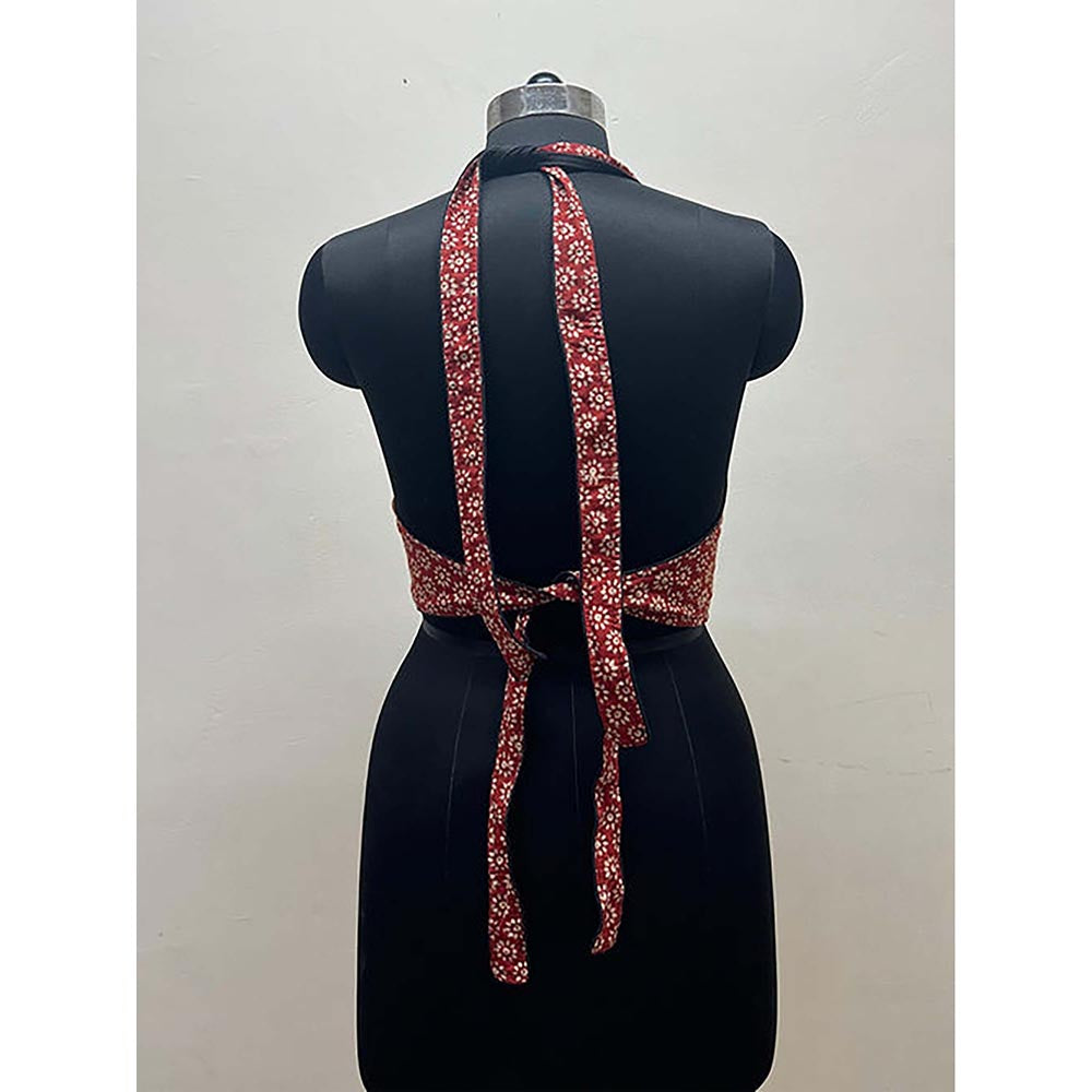 PRATHAA Halter Neck Cotton Stitched Blouse With Tie Up