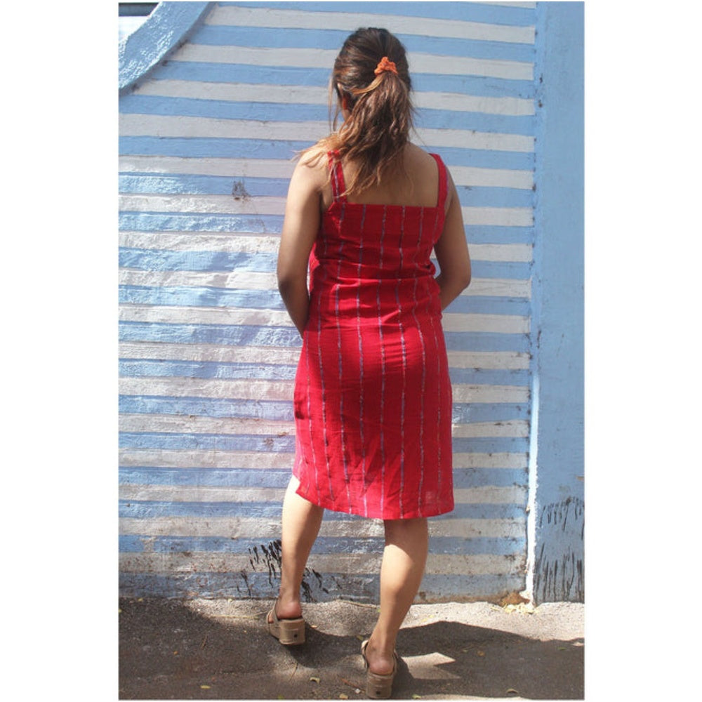 PRATHAA White Shirt Dress In Jamdani Fabric with Red Slip