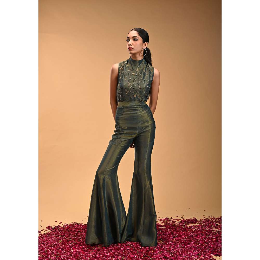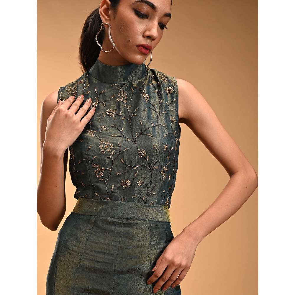RIRASA Green Embroidered Sleeveless Top with Pant (Set of 2)