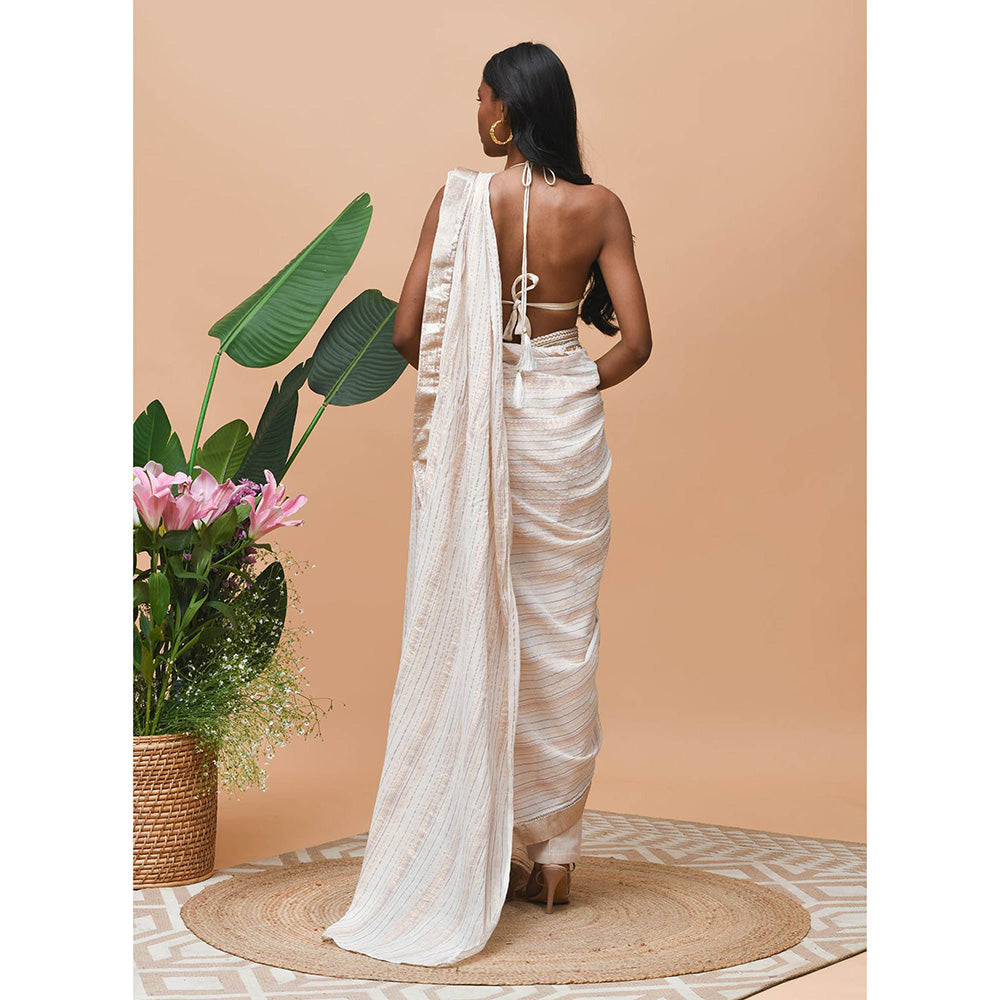 RISHI & VIBHUTI Delilah Rose Gold Belt Saree with Stitched Blouse