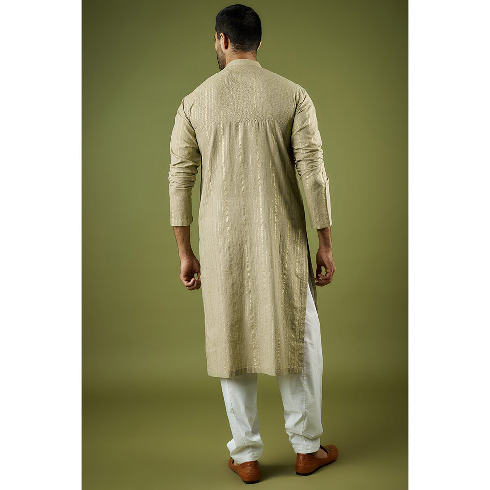 Ritambh by Rishi & Sachin Light Green Cotton Lurex Block Printed Kurta
