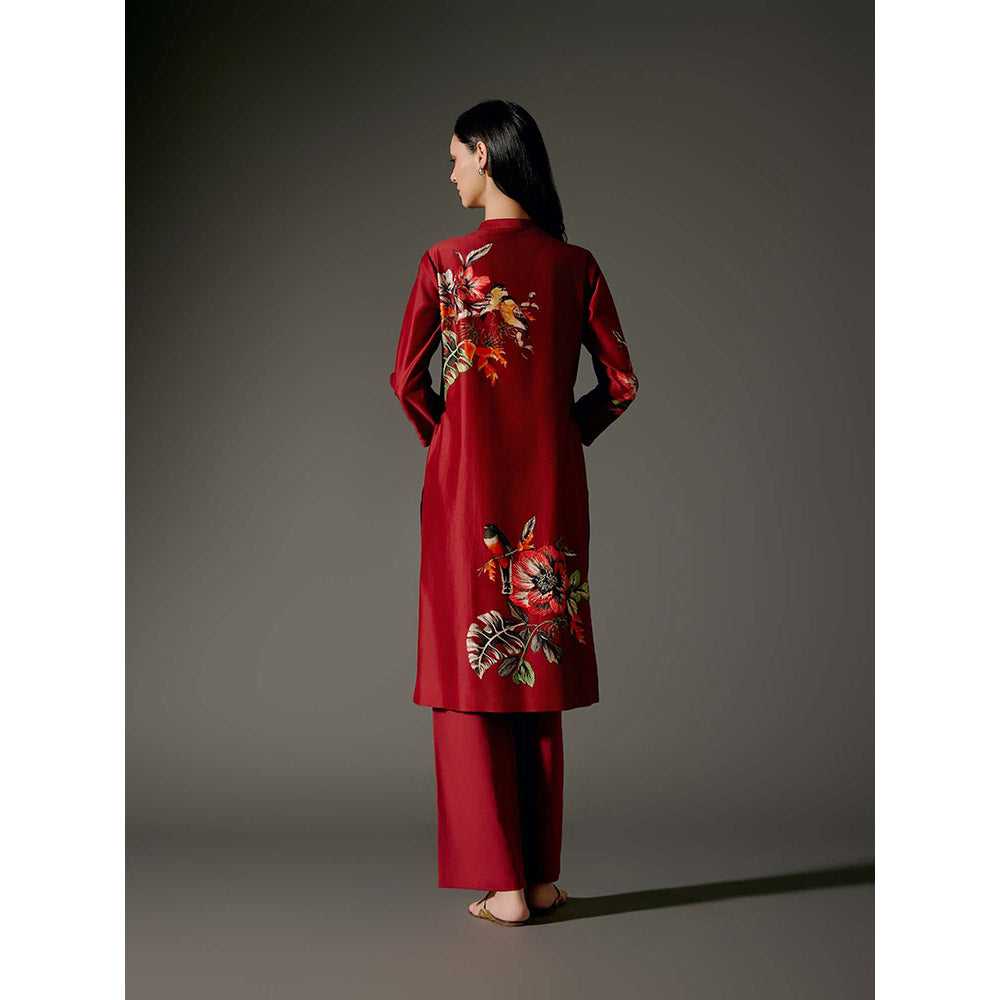 Rohit Bal Red Chanderi Print Kurta with Pant (Set of 2)