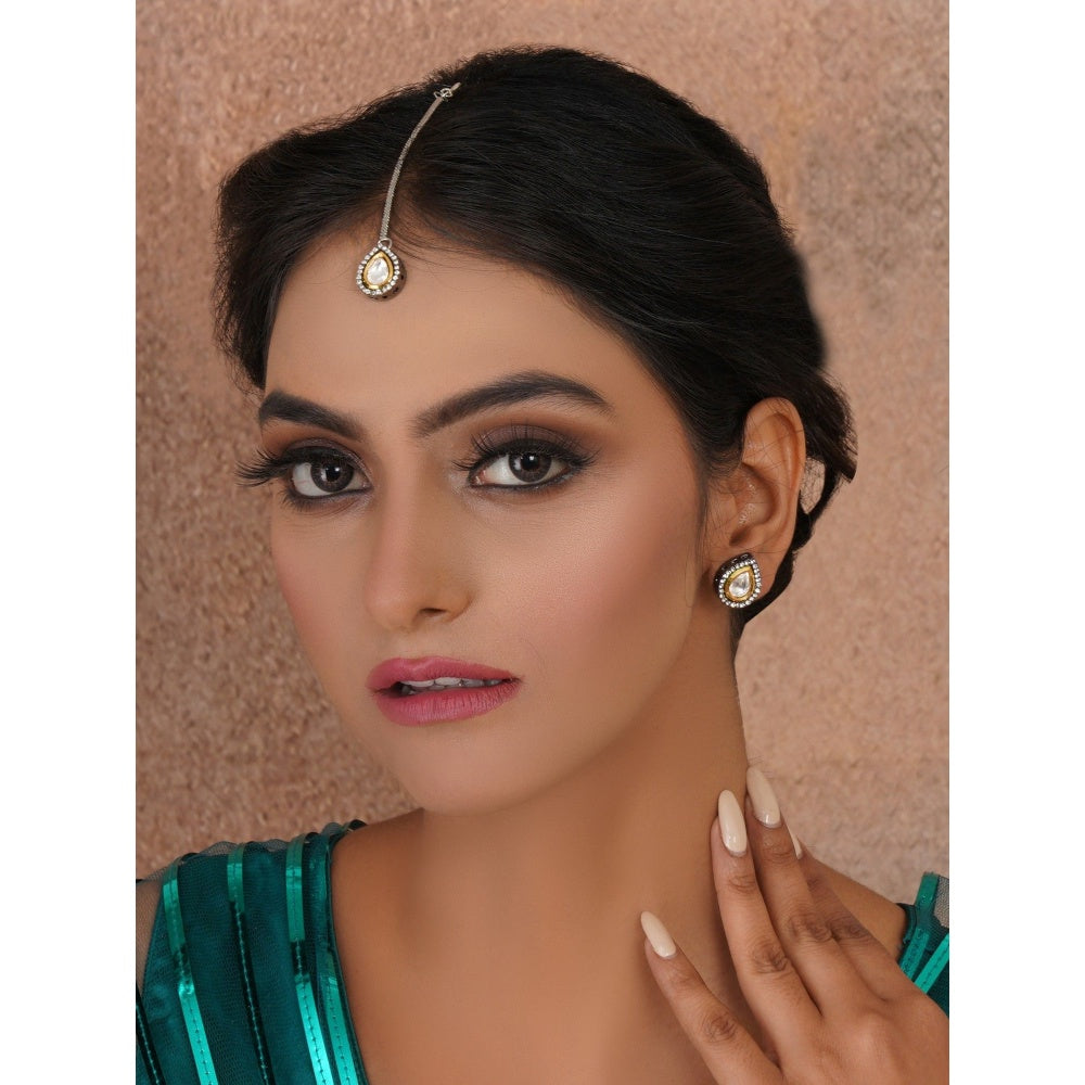 Dual Tone Kundan Maang Tikka with Earrings