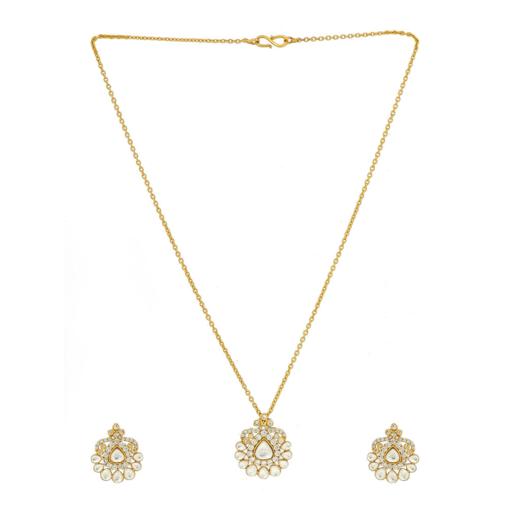 Ruby Raang Studio Kundan Antique Finish Earrings & Necklace Set -White