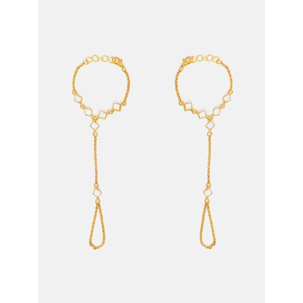 Description : Featuring A Fine Gold-Toned Chain Adorned With Soft, Mirror-Like Accents, It Creates A Delicate Flow From The Bracelet To The Finger Ring.The Subtle Sparkle Catches The Light Beautifully Adding A Refined Charm Without Overpowering The Look.Also, Adding A Refined Charm Without Overpowering The Look .Very Lightweight And Comfortable, It Sits Gently On The Hand, Making It Ideal For Long Wear While Enhancing Your Overall Style With A Touch Of Understated Luxury.