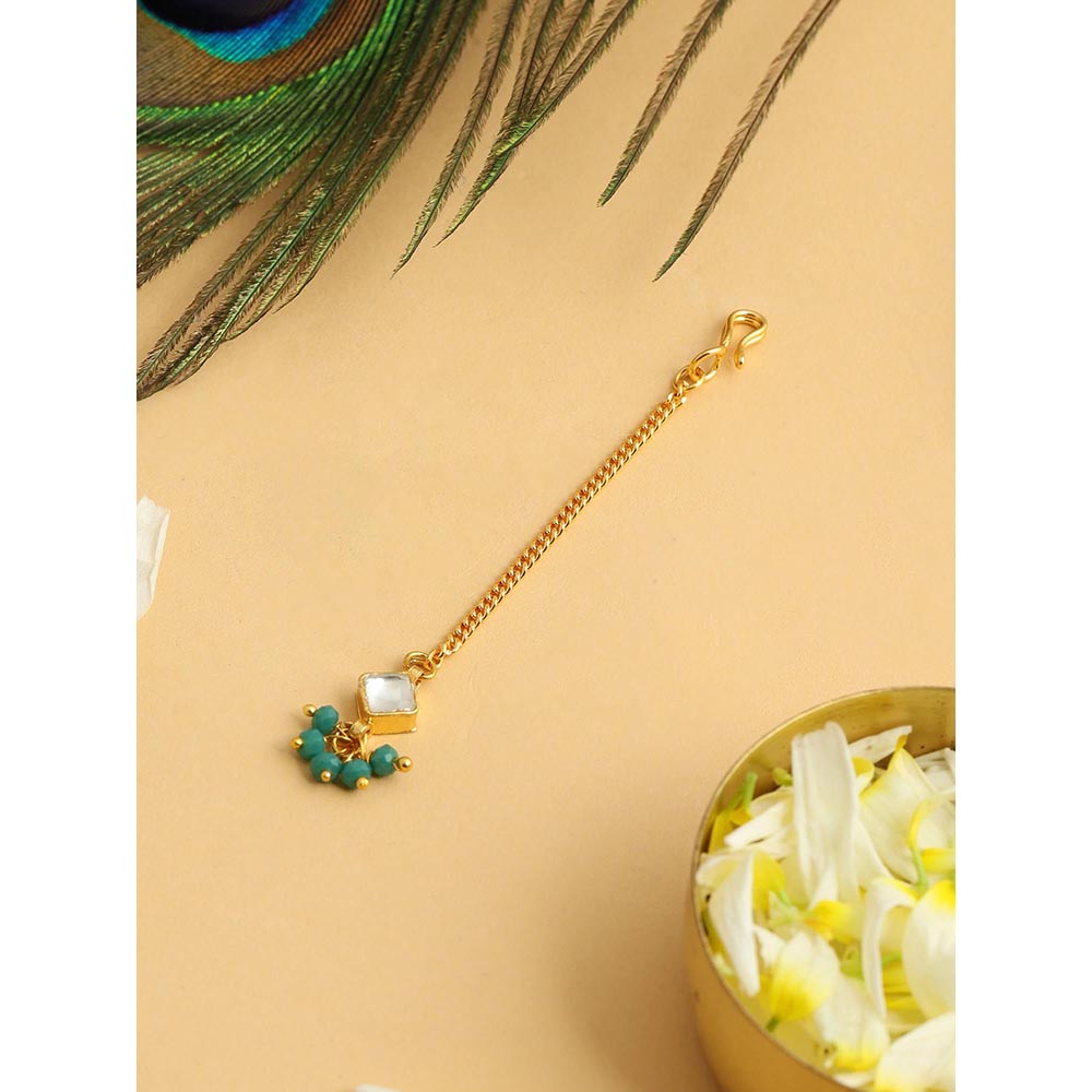 Description : From Our Mannat Collection, This Delicate Maang Tikka Is Inspired By The Quiet Prayers We Whisper With Closed Eyes And Hopeful Hearts. Crafted In A Graceful Gold-Tone Finish, It Features A Dainty Central Motif Highlighted With Subtle Detailing And Finished With Tiny Green Drops-Symbolising Growth, New Beginnings, And Fulfilled Wishes.Light In Weight Yet Rich In Meaning, This Maang Tikka Rests Gently Along The Hairline, Adding Just The Right Touch Of Elegance Without Overpowering Your Look. It S Perfect For Every Women Who Believe In Simplicity, Festive Mornings Filled With Rituals, Or Intimate Celebrations Where Every Detail Carries Emotion.