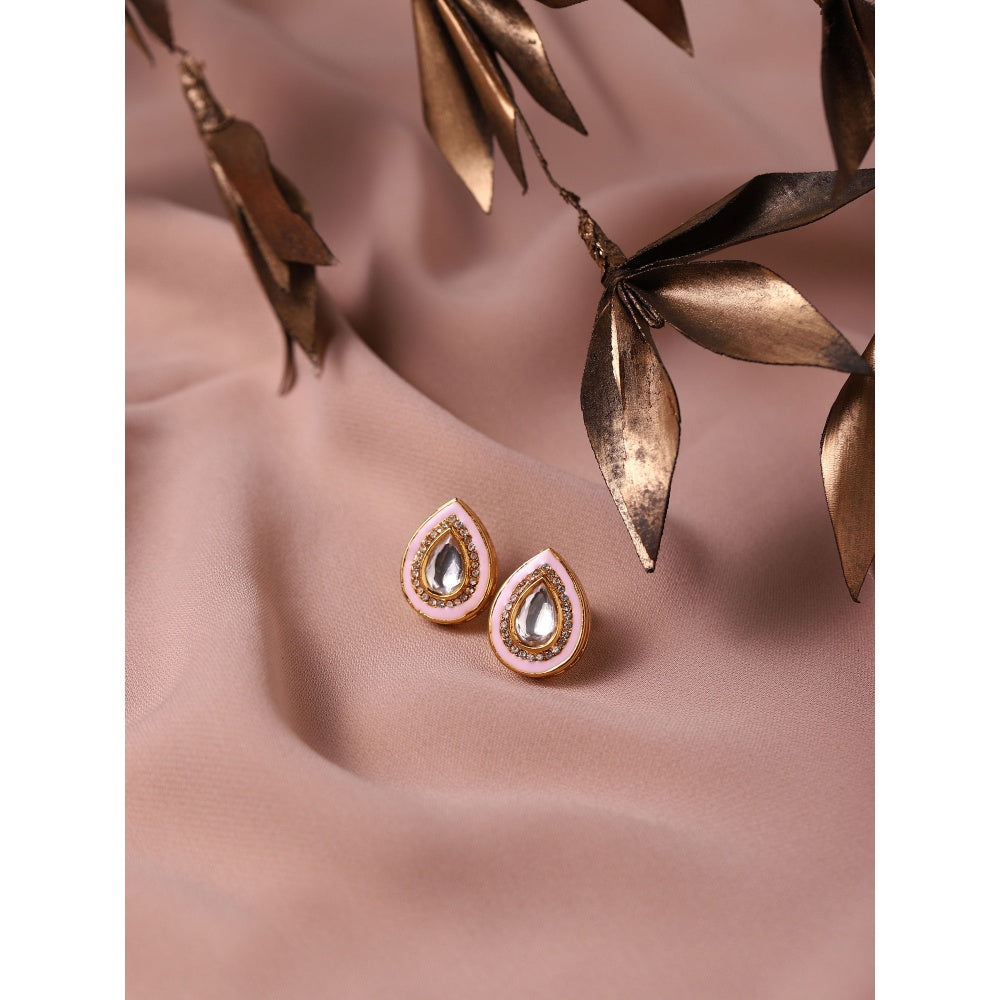 Pink Meenakaari Kundan Studs