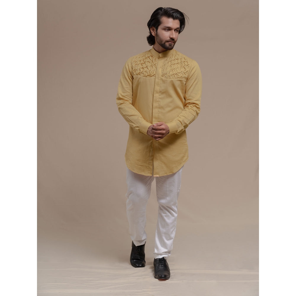 Cream Smocking Short Kurta-Tuxedo Shirt (Set of 2)