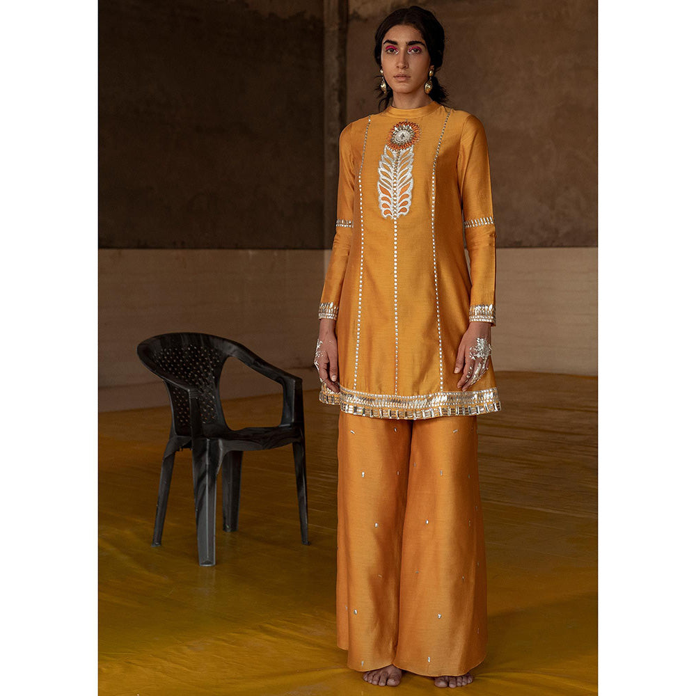 Saksham & Neharicka Ochre Embroidered Sharara (Set of 3)