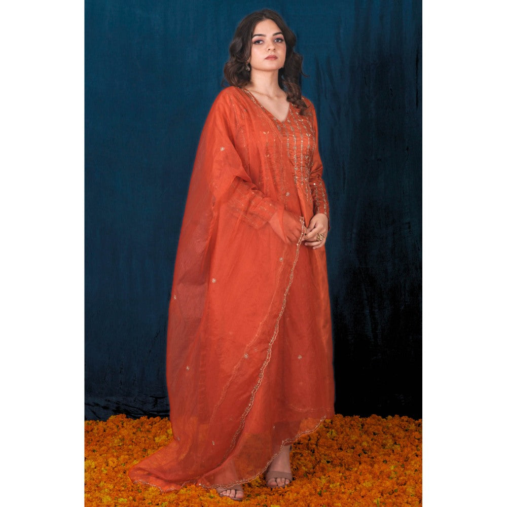 Orange Silk Kurta with Pant and Dupatta (Set of 3)
