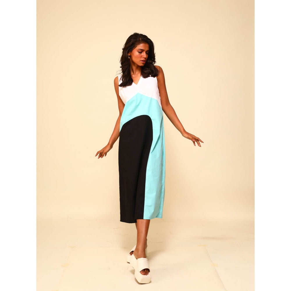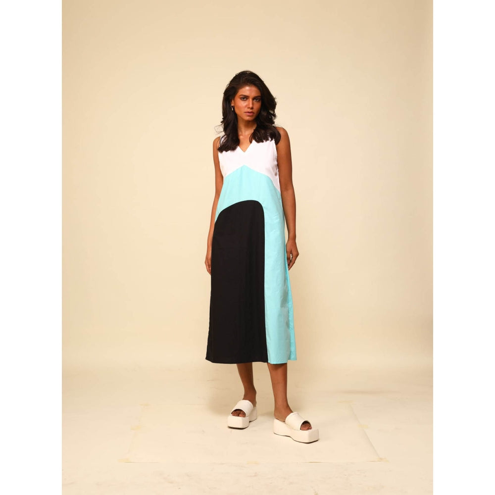 Description : A Color Blocked Sleeveless Midi Dress with Colours Of White
