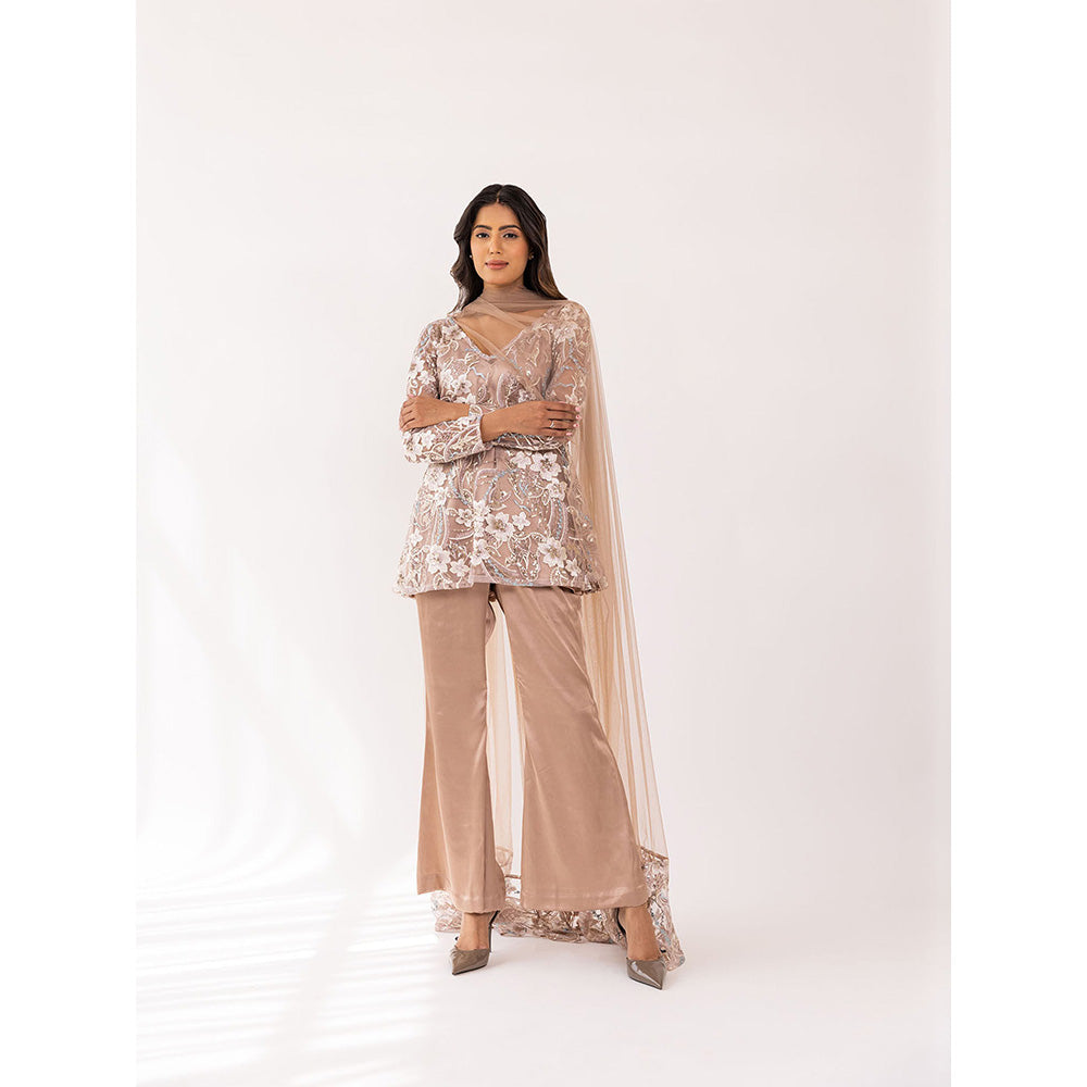 Bronze Embroidered Sequined Full Sleeves V-Neck Kurta With Pant & Dupatta (Set of 3)