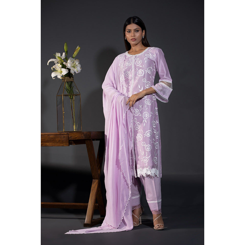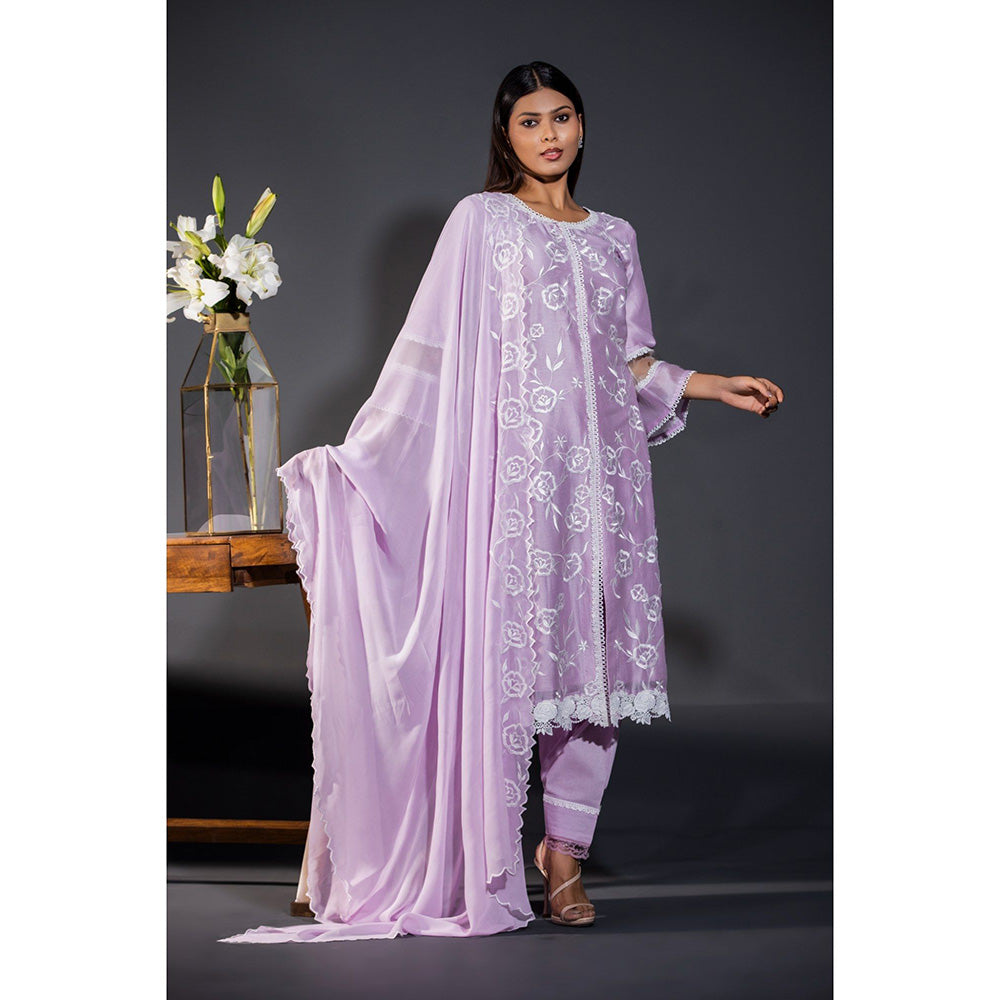 Shweta Dabas Our Rose Laces Pure Chanderi Kurta with Salwar and Dupatta (Set of 3)