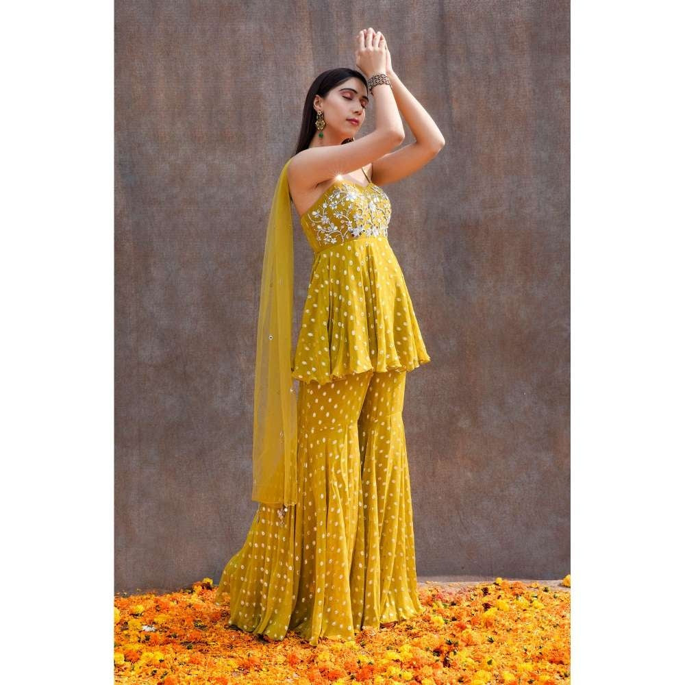 Pack Contains : 1 Peplum Top, 1 Sharara, 1 Dupatta