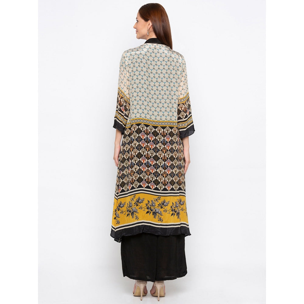 Black Kurta With Palazzo And Printed Jacket - Customisable (Set of 3)