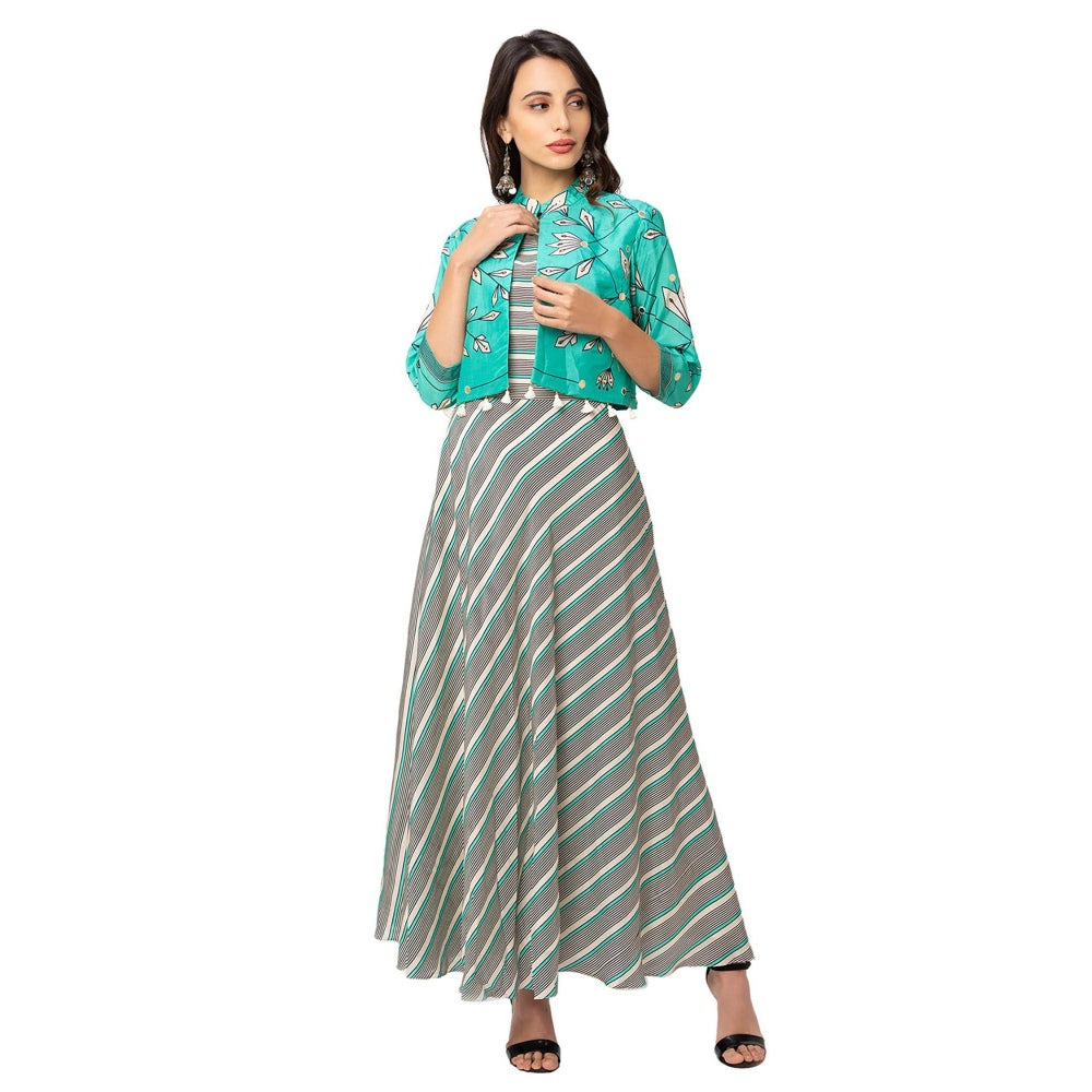 Soup by Sougat Paul Green Floral Jacket And Dress (Set of 2)