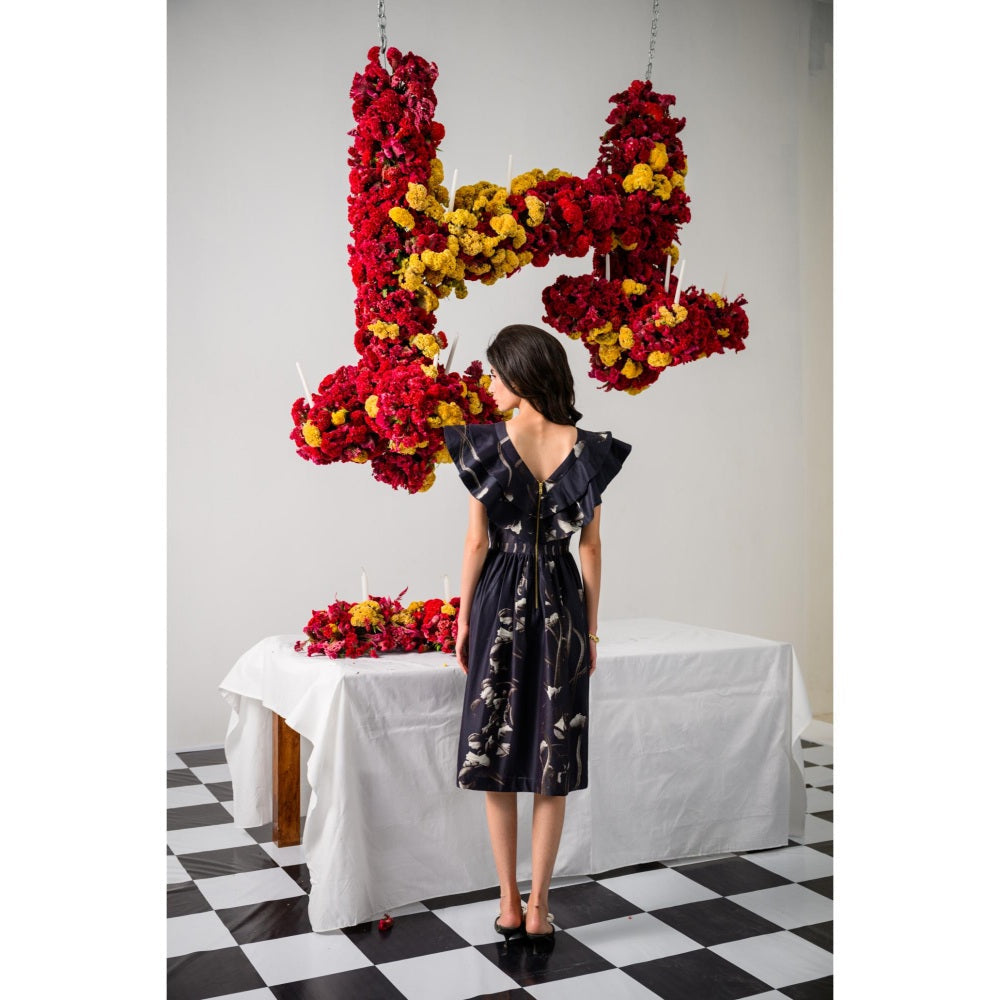 The Dramebaaz Company Black Victorian Petals Ruffle Dress