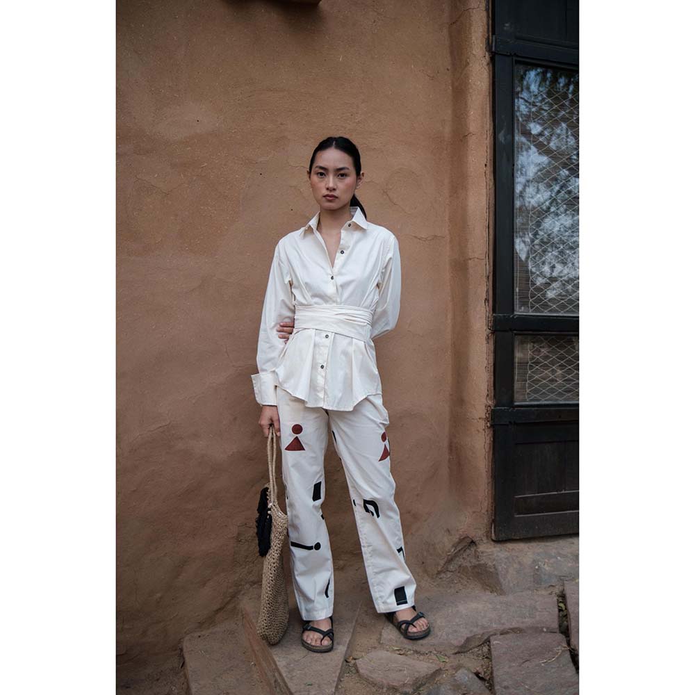 The Terra tribe Off White Nara Front Knot Shirt