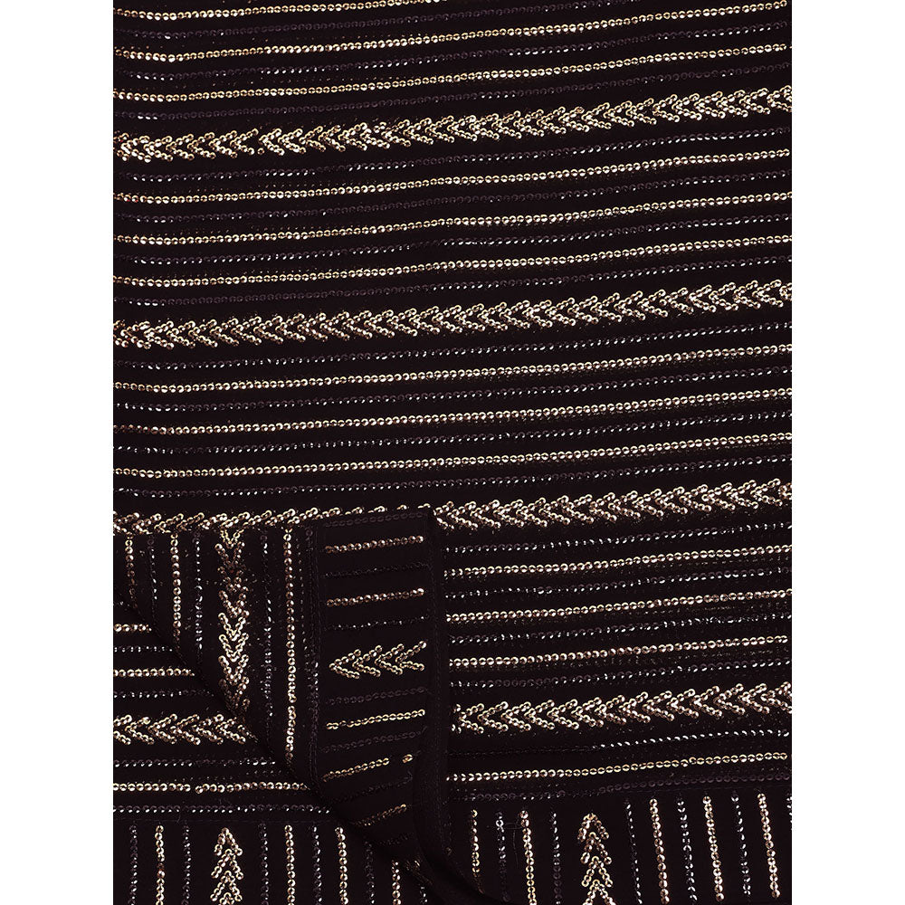 Description : Wrap yourself in this stylish and beautiful saree from Two Sisters by Gyans. It is crafted from high-quality fabric. It features black embellished saree with unstitched blouse. Team it up with heels and potli bags.