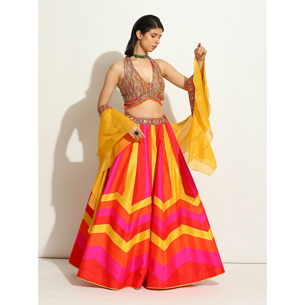 VANDANA SETHI Multicolored Lehenga with an Halter Brocade Blouse (Set of 3)