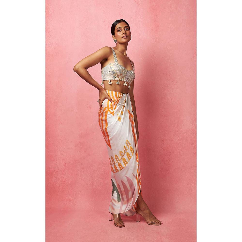 Vedika M Multi-Color Draped Skirt with Bustier and Jacket (Set of 3)