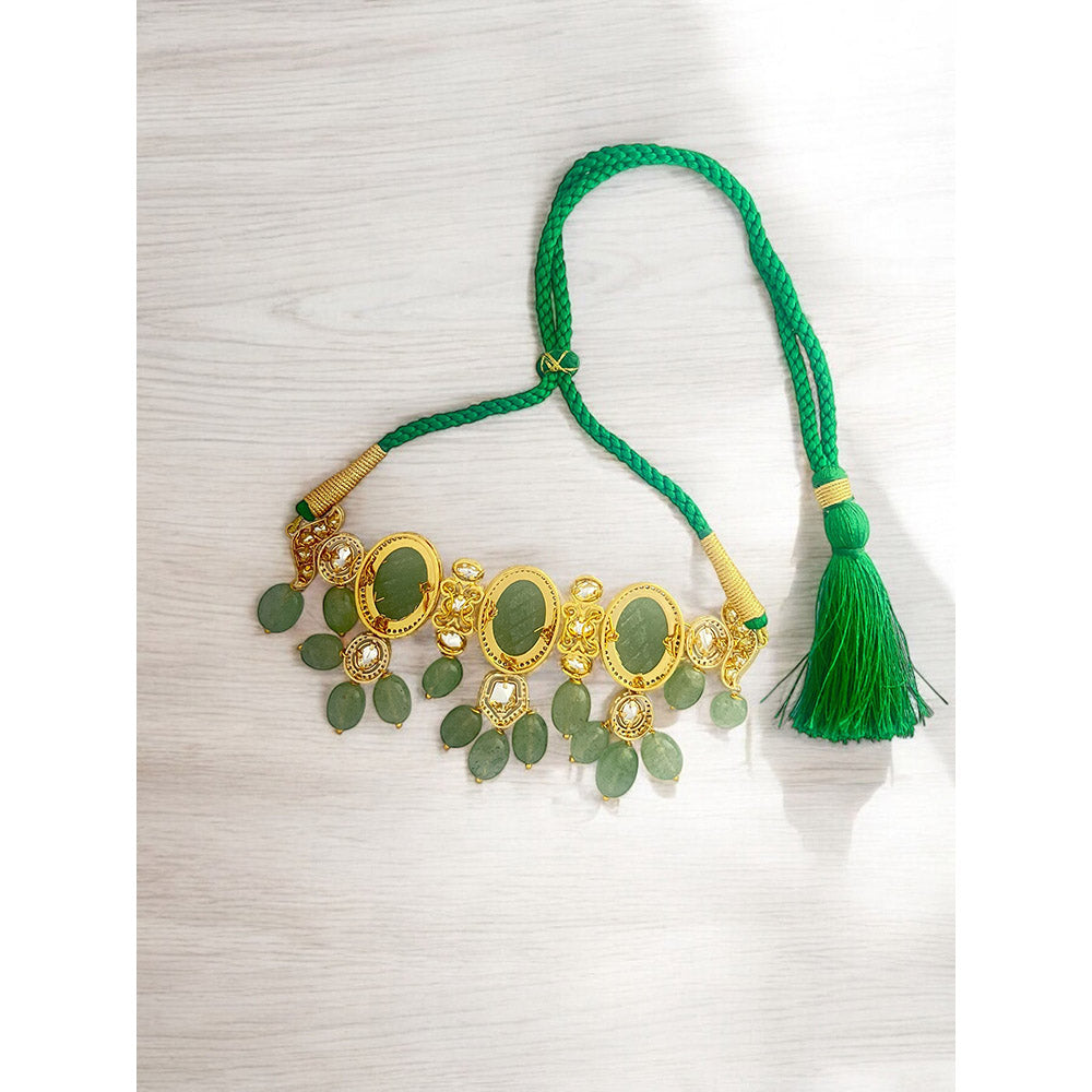 XAGO Le Zia Gold Plated Sea Green Beads and Stones Choker Necklace