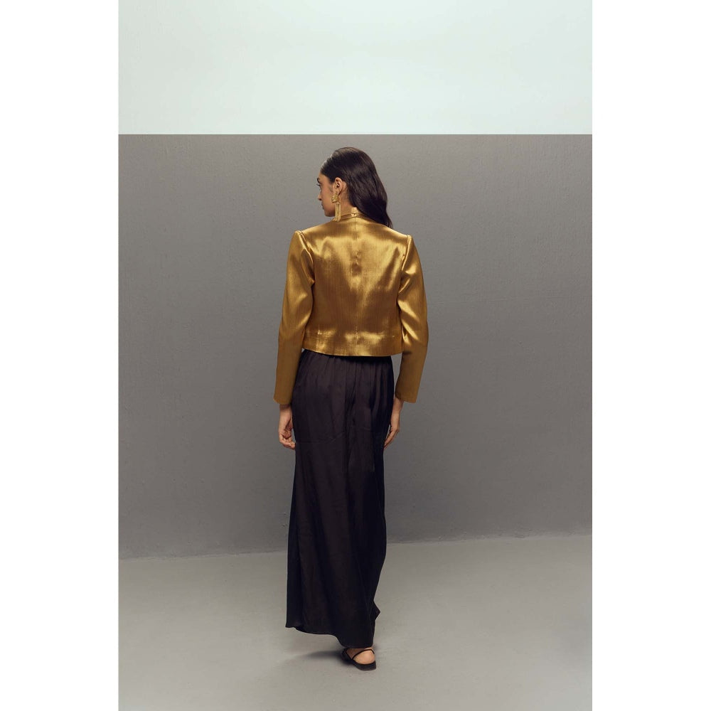 Zaitra Ripple Gold Jacket with Skirt and Bustier (Set of 3)