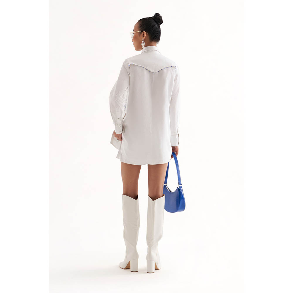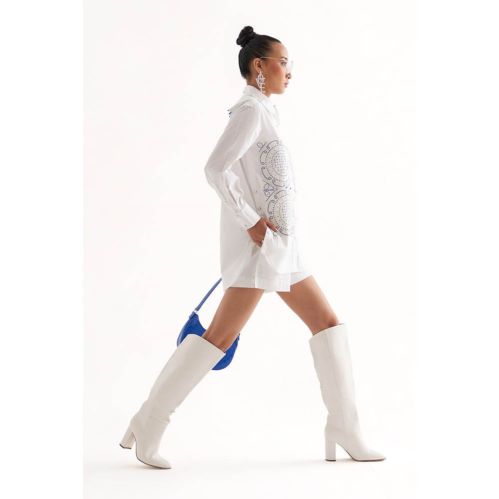 Description : Experience the elegant way of dressing with this white Co-ord Set by Our Love. Crafted from high quality cotton, it features button fly closure and embroidered pattern along with full sleeves & collar neck. Pair it with shoes and watch to complete your ensemble.