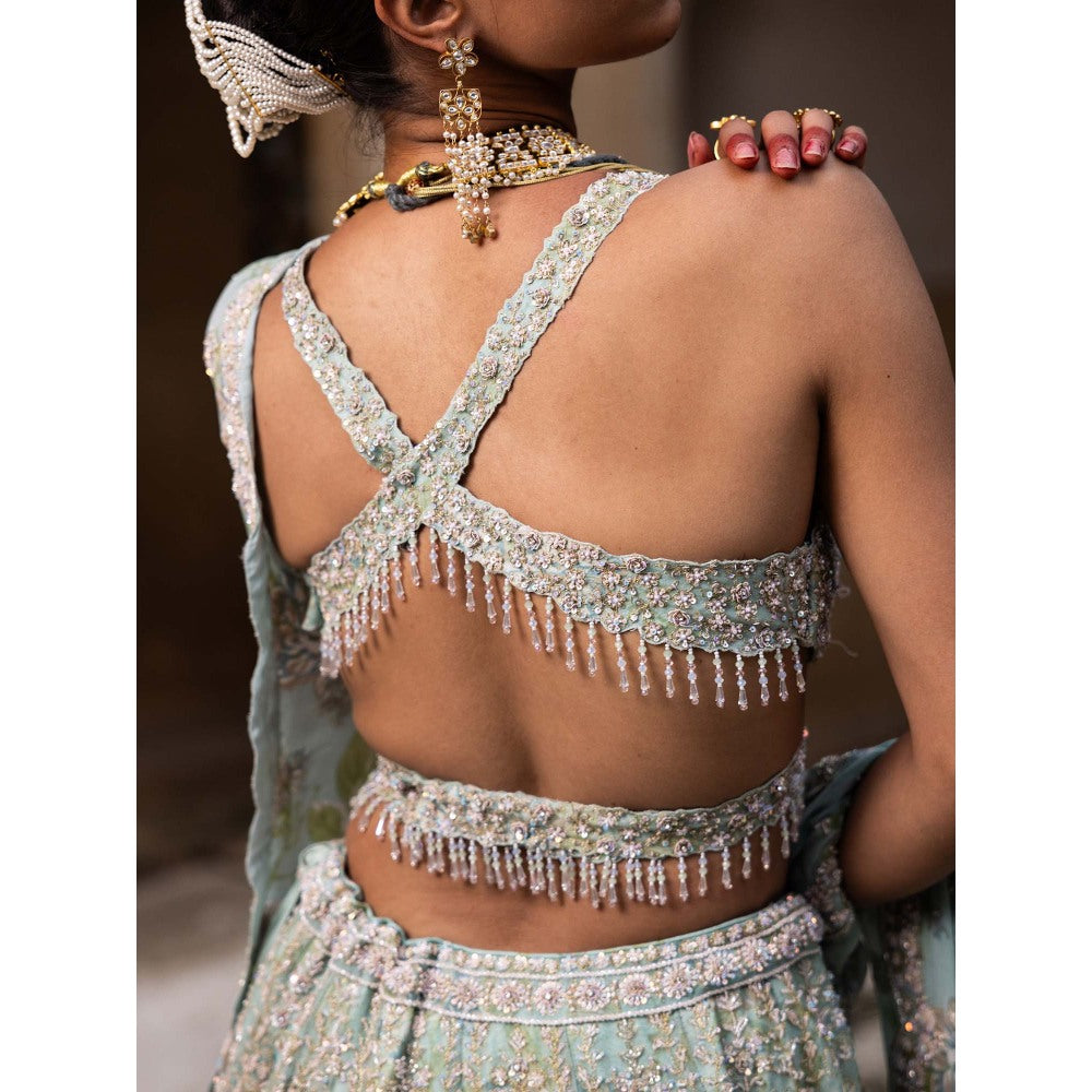 Green Blush Opulence Lehenga with Blouse and Dupatta (Set of 3)