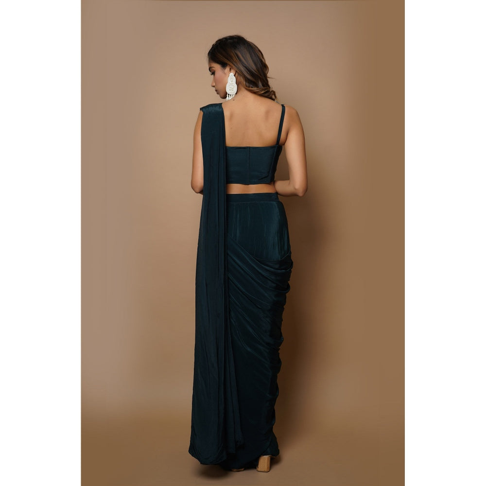 Ahi Clothing Teal Ready To Wear Saree With Stitched Blouse