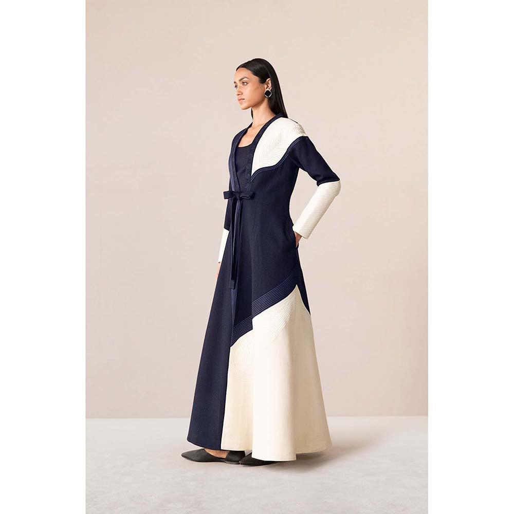Description : Channel style and elegance in this navy blue jacket from AMPM. Crafted from wool, this alluring jacket is finished with full sleeves. This jacket is perfect for parties and festive occasions.