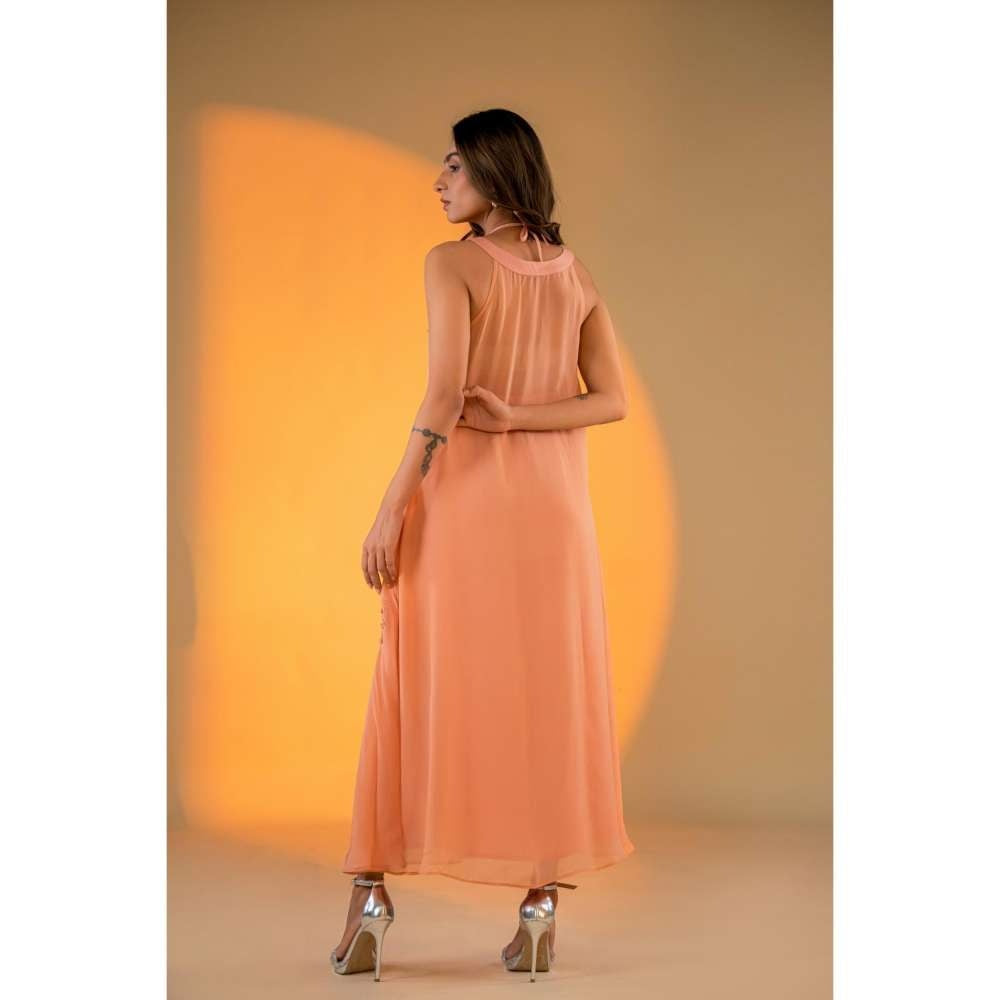 Description : Stand Out In This Peach Dress with A Beautifully Designed Neckline and Exquisite Embroidery. The Delicate Details and Classic Silhouette Create A Sophisticated Look For Any Event.