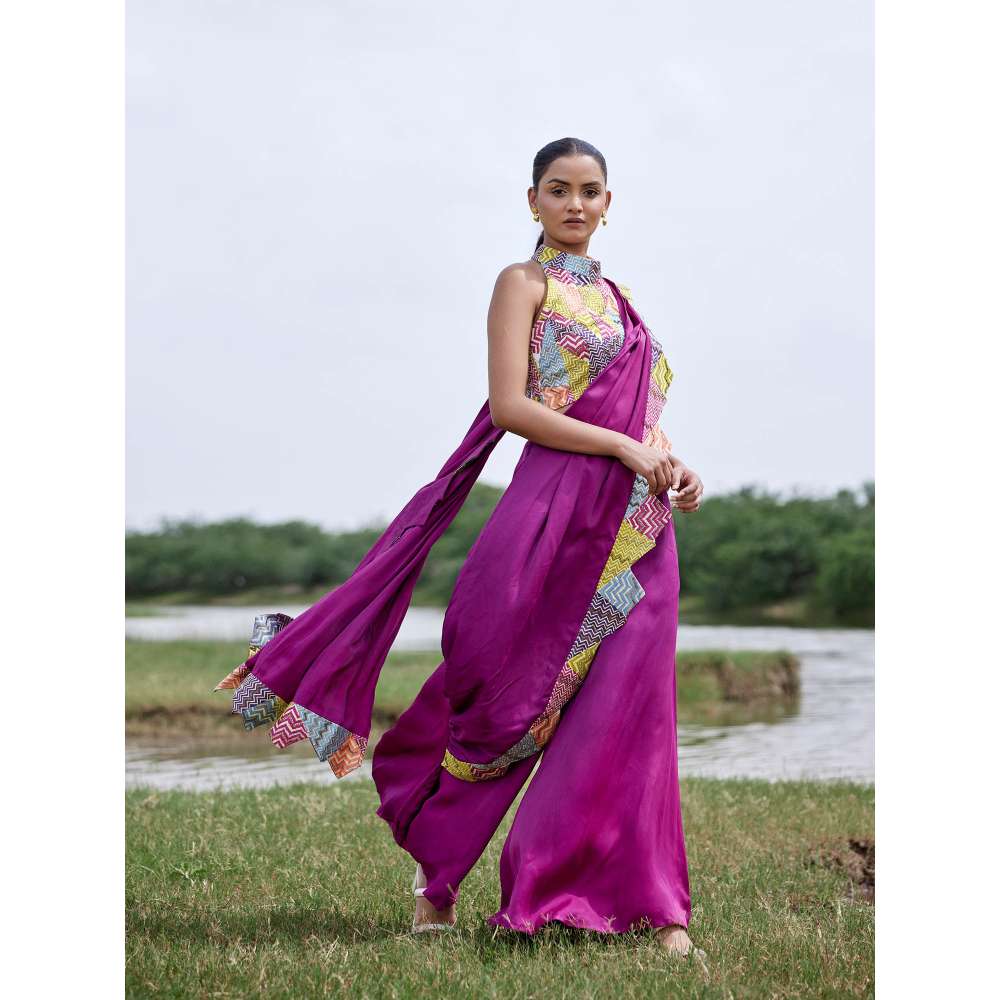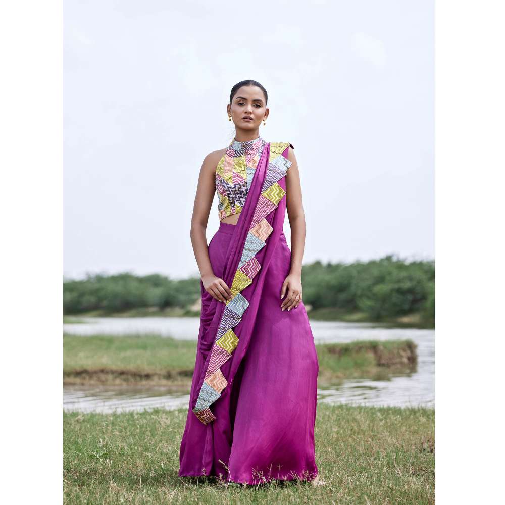 Pack Contains : 1 Crop Top, 1 Pant With Attached Drape