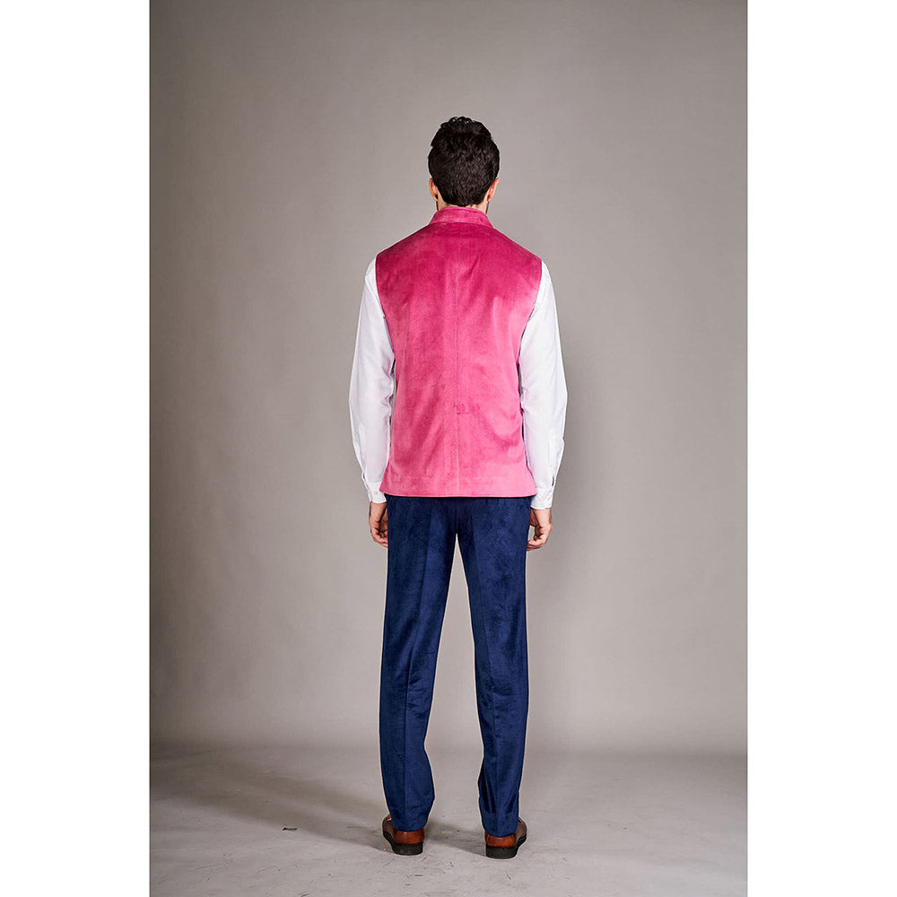 Description : Baby Pink Velvet Classic Bundi With White Chinese Collar Shirt. Tailored to sartorial perfection from premium quality fabric, it assures a soft and soothing touch against the skin. The exquisite silhouette adds to its appeal.