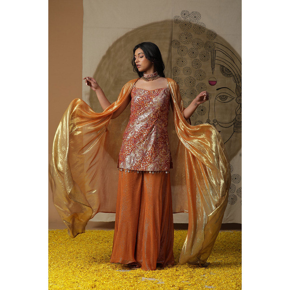 Arpita Sulakshana Burnt Orange Kurta Palazzo with Cape (Set of 3)