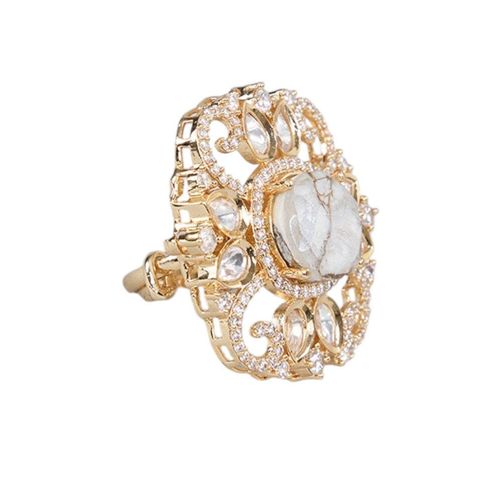 Auraa Trends Gold Finish Kundan Polki Floral Moissanite Ring