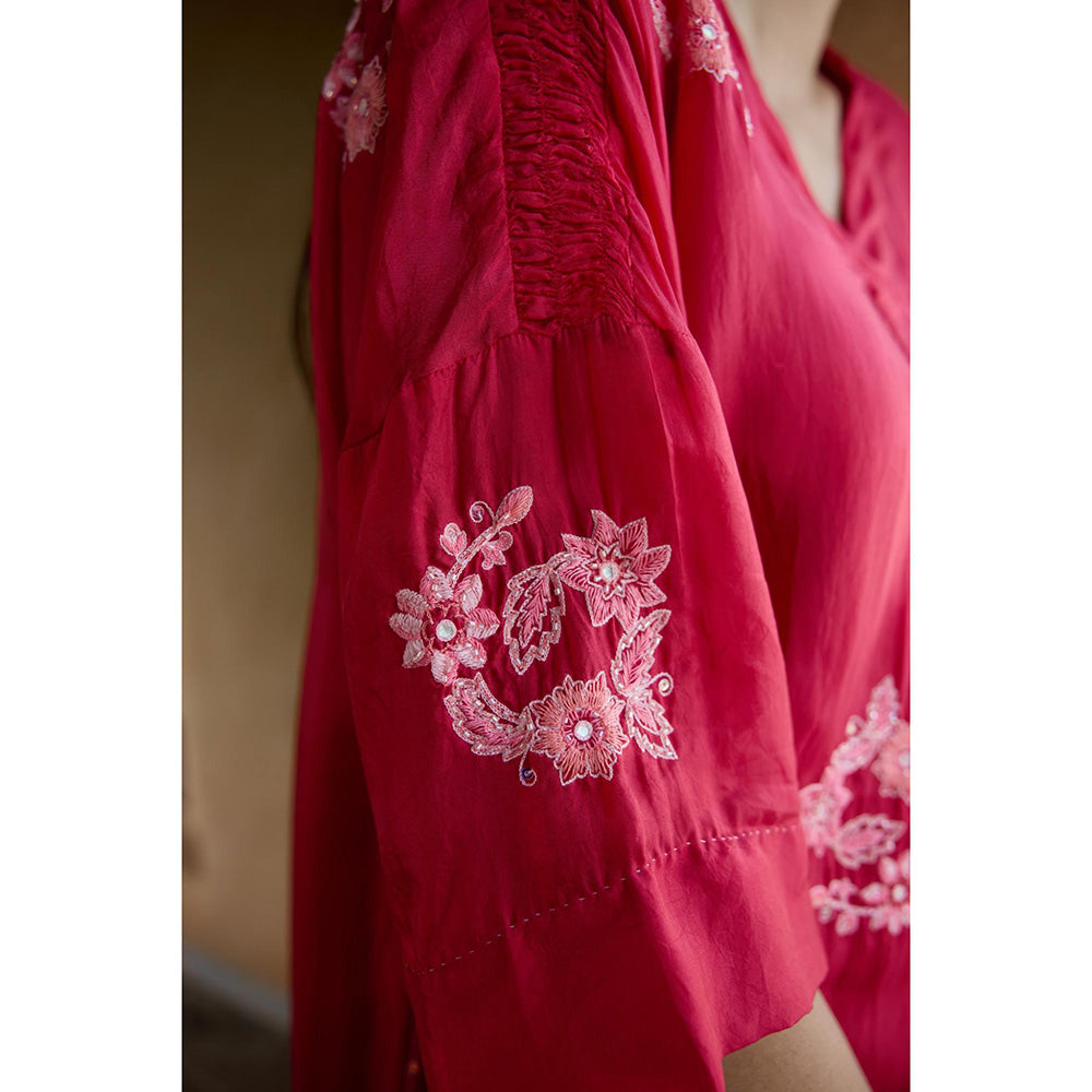 AYAKA Paco Red Embroidered Floral Tunic (Set of 2)