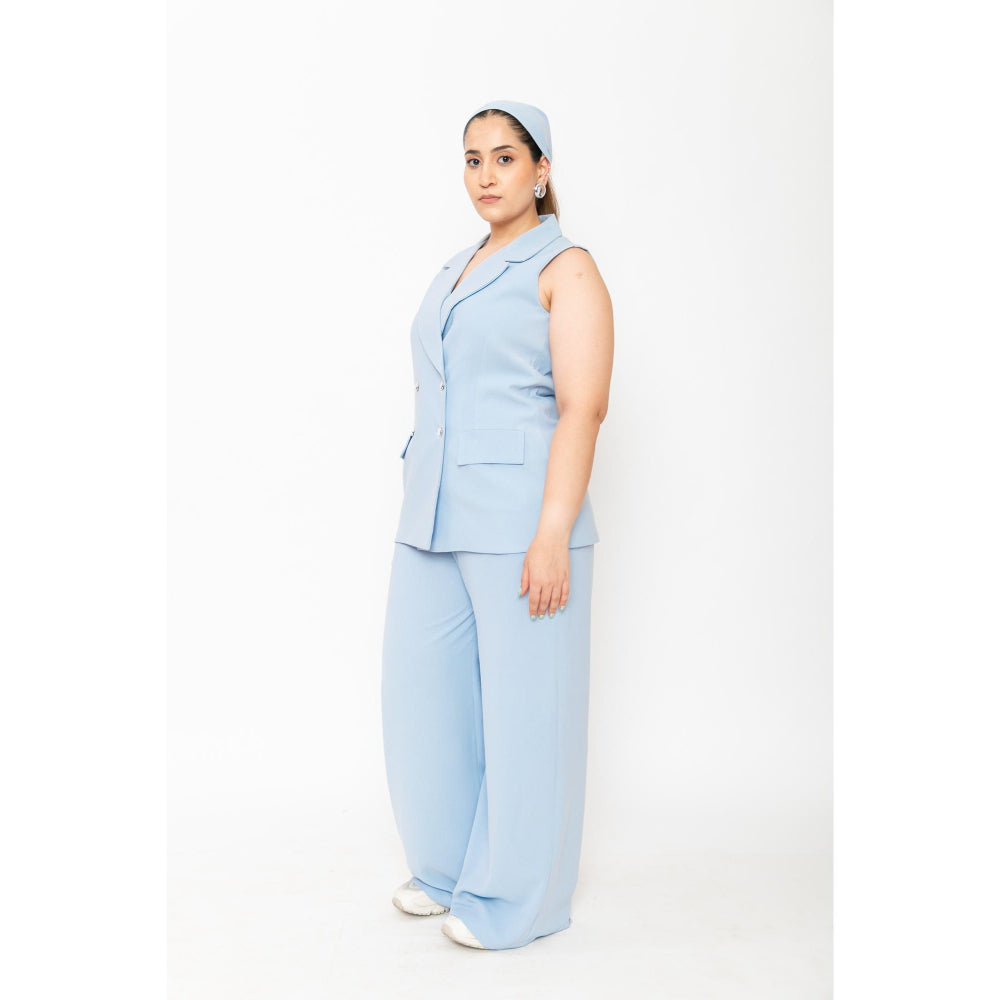 Description : Dress-up in style with this blue co-ord set from Contemponari. Made from high quality crepe, it features button fly closure and solid pattern along with sleeveless & notched lapel design. Pair it with heels to complete your ensemble.