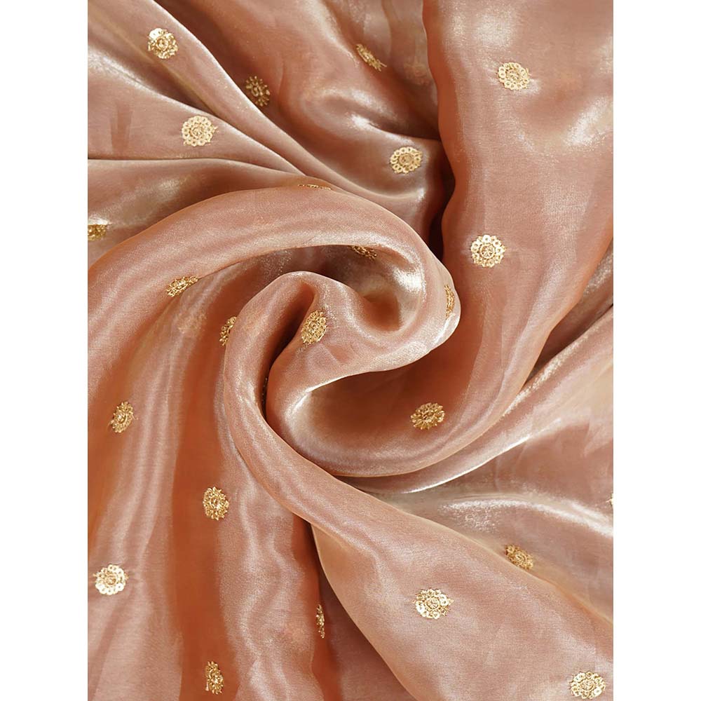 Dress & Dazzle Peach Gold Tissue Saree with Unstitched Blouse
