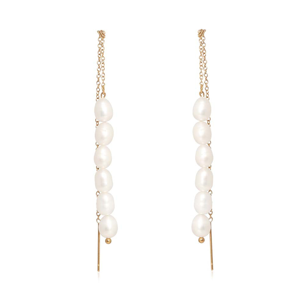 Description : Add Flair To Your Collection With These Hanging Chain Dangle Earrings, Showcasing Natural Freshwater Pearls In A Stylish Stainless Steel Design.
