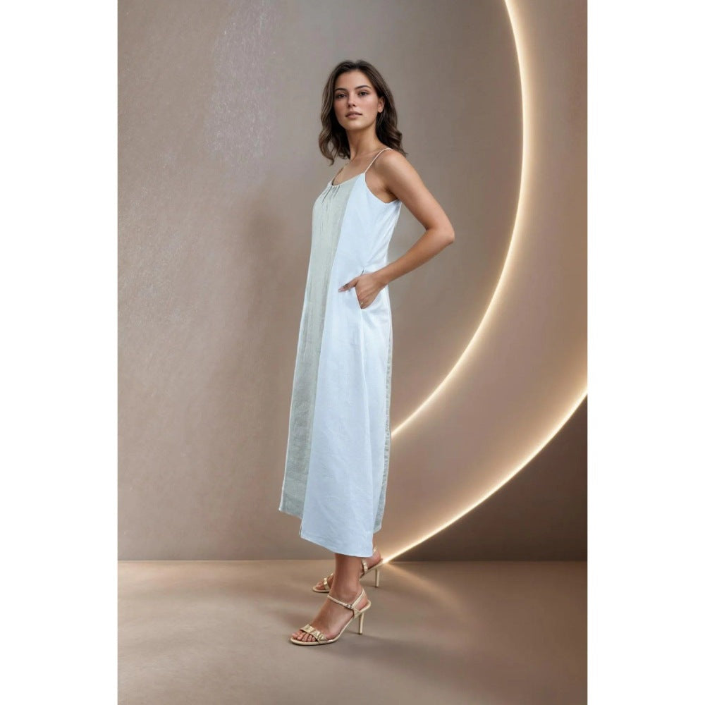 Description : The Ivory Dune Dress Combines Sophistication And Comfort. This Stunning White Dress Features Premium Italian Linen, An A-Line Cut, And Metallic Details, Making It Ideal For Evening Wear.