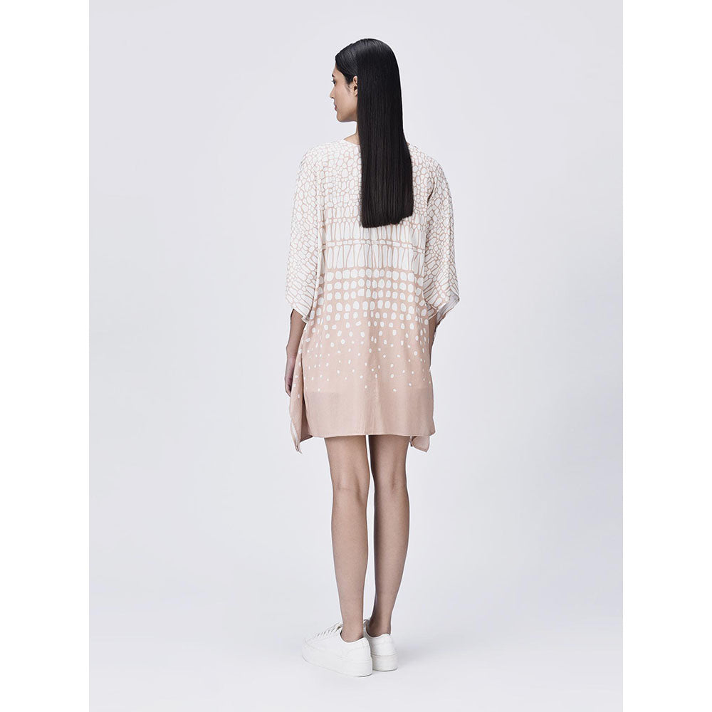 Genes Lecoanet Hemant Women's Pink V-Neck Printed Short A-Line Dress