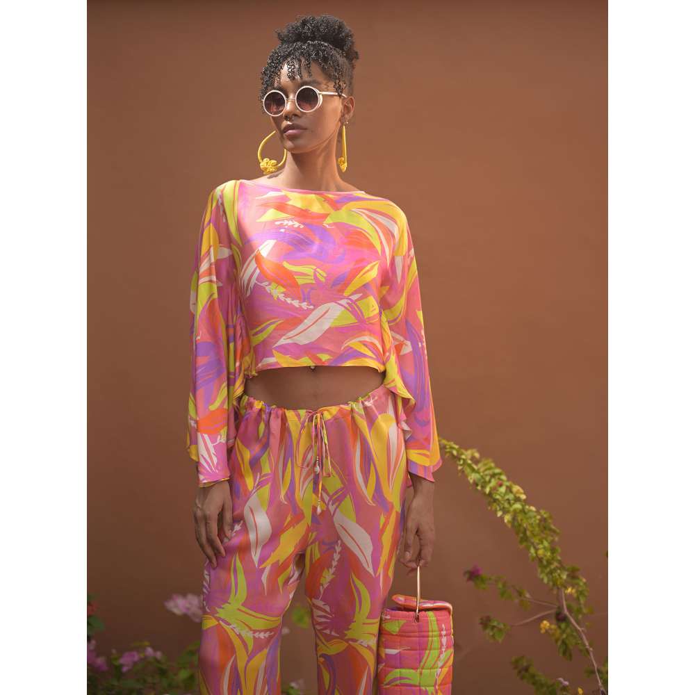 Description : Amp up your styling game with multi-color crop top from GUAPA. It is crafted from high-quality fabric. It features printed pattern with flared sleeves boat neck. Team it up with heels to complete your look.