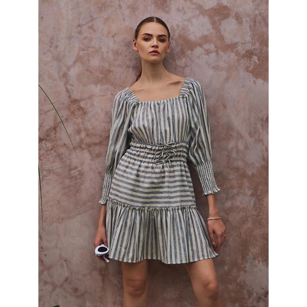 Description : The Only Thing That Matters Is Who You Are Wearing When You Make Your Big Entrance. Dress Features A Gathered Bodice, Square Neckline, And Puffed Sleeves With Smocking At The Ends. Elasticated Waist With A Knot Drawstring For A Flattering Shape. Skirt Flows Into Soft Gathers For Graceful Movement. Timeless Striped Design With Horizontal And Vertical Tiered Panels.