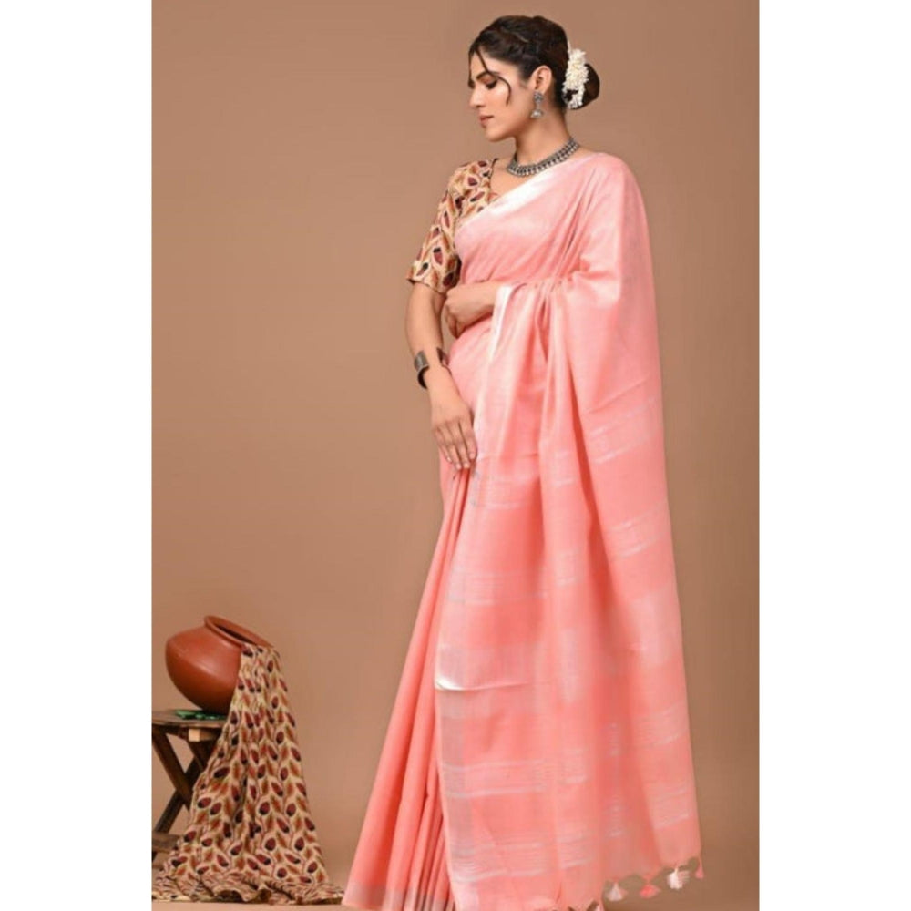 Womens Woven Tassels Peach Pre-Draped Saree With Unstitched Blouse