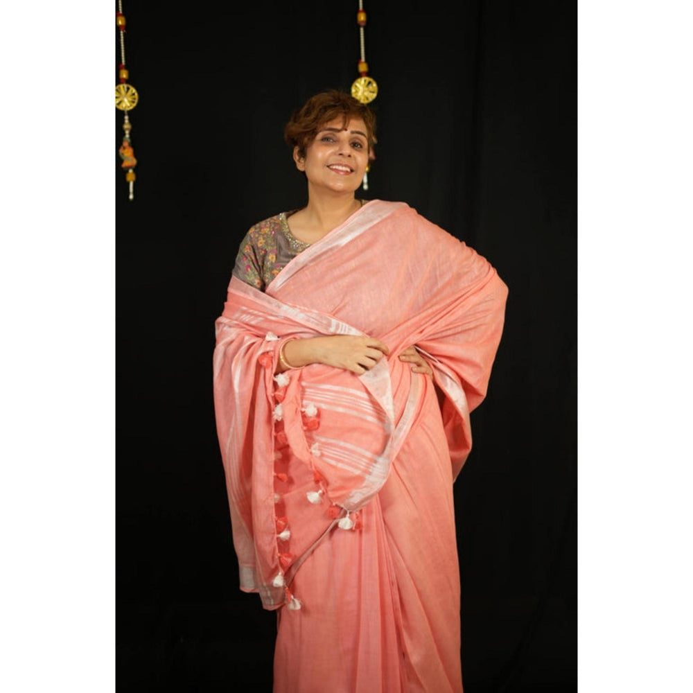 Isadora Life Womens Woven Tassels Peach Pre-Draped Saree With Unstitched Blouse