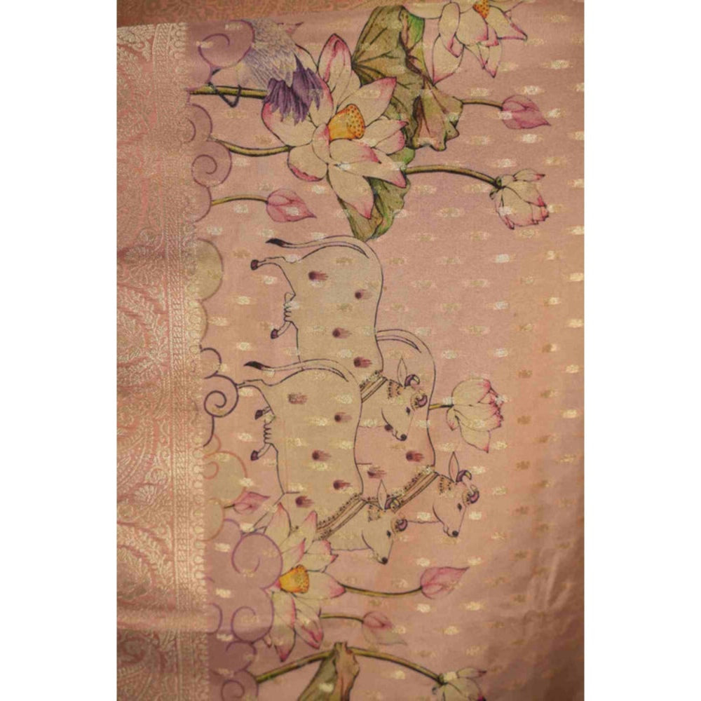 Isadora Life Womens Woven Zari Beige Pre-Draped Saree With Unstitched Blouse