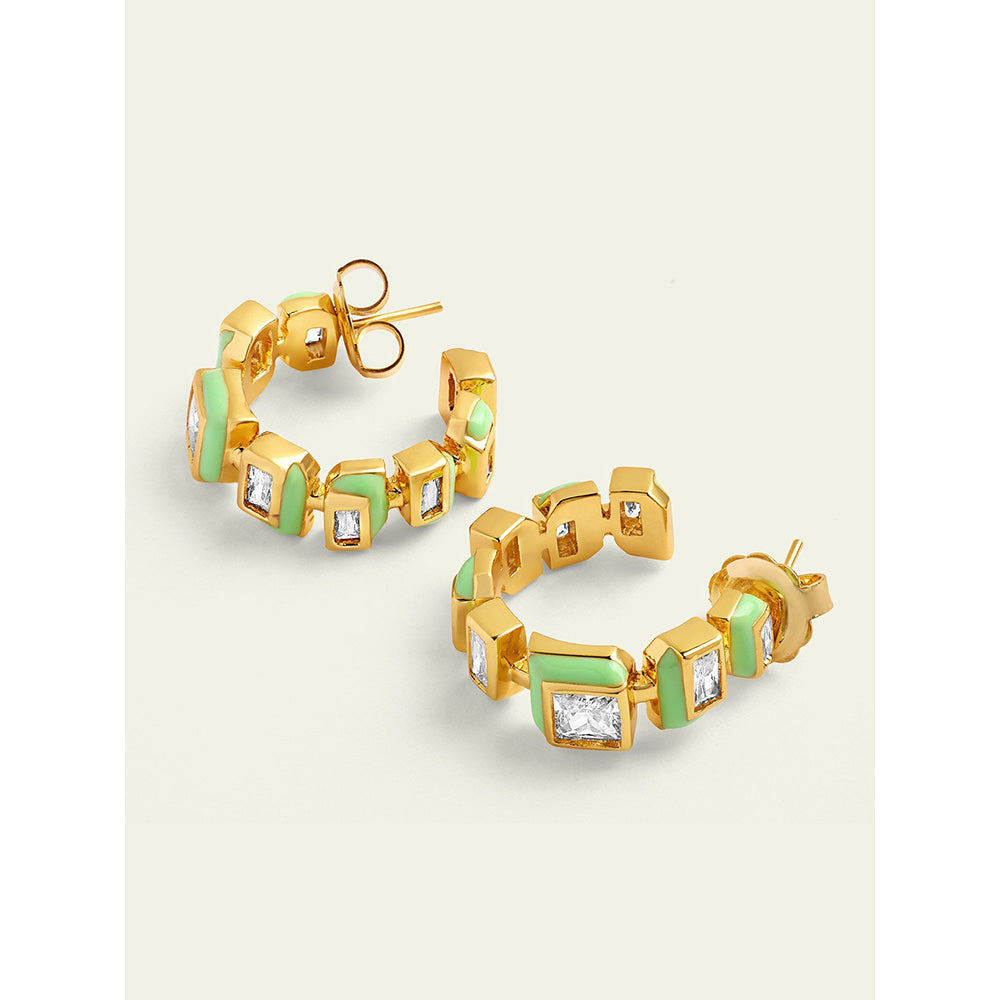 Description : Get Yourself Noticed With These Green Enamel Hoops. These Fun Earrings Feature A Stunning Green Cz Stone And Are Plated With 18-Karat Gold For A Touch Of Luxury. Perfect For Everyday Wear Or Adding A Pop Of Color To Your Party Look. Hoop-Fully (See What We Did There?), You'Ll Love Them As Much As We Do!