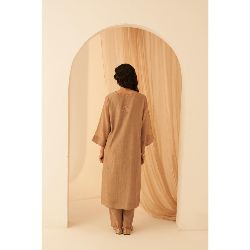 Champagne Chanderi Thread Embroidery Kurta with Pant and Dupatta (Set of 3)
